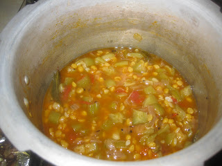 Now add 1/2 cup of water mix well and pressure cook it for 3 whistles.